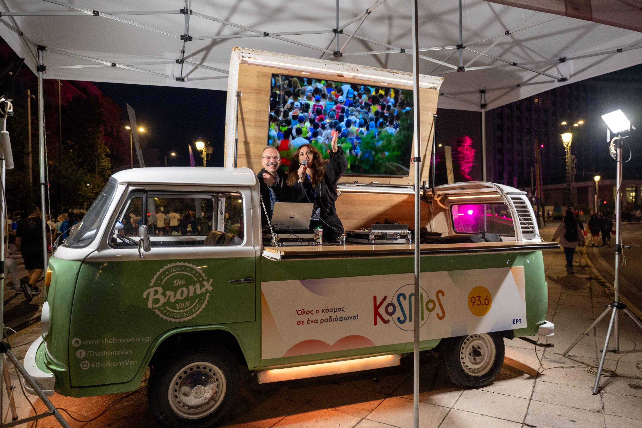 Τους συνόδευαν οι μουσικές επιλογές παραγωγών του Kosmos από το ειδικό διαμορφωμένο βαν στο ύψος του αγάλματος του Δρομέα.
