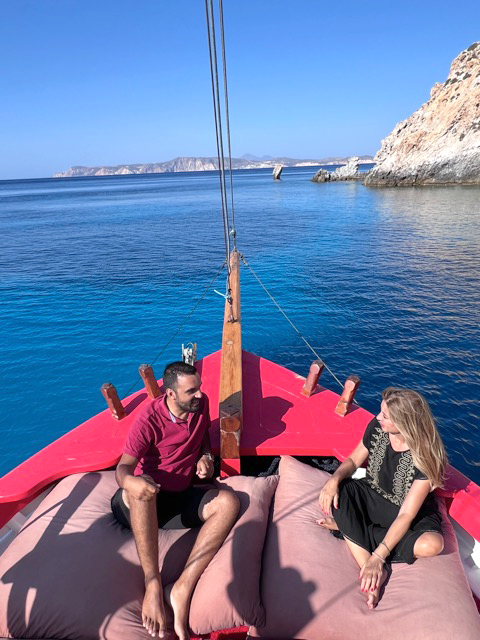Ο Αυγουστής Γαλανός, νέος και ριζωμένος στον τόπο του, είναι ο οδηγός μας. Με την αλμύρα στα χέρια και την καρδιά στραμμένη στο φως, κρατά ζωντανή τη μνήμη της Κιμώλου μέσα από τη μαγειρική, τη δημιουργία και την αγάπη για τον τόπο. Πήρε το καΐκι του παππού του, του έδωσε πνοή και με αυτό πραγματοποιεί εκδρομές στην Κίμωλο και την Πολύαιγο.