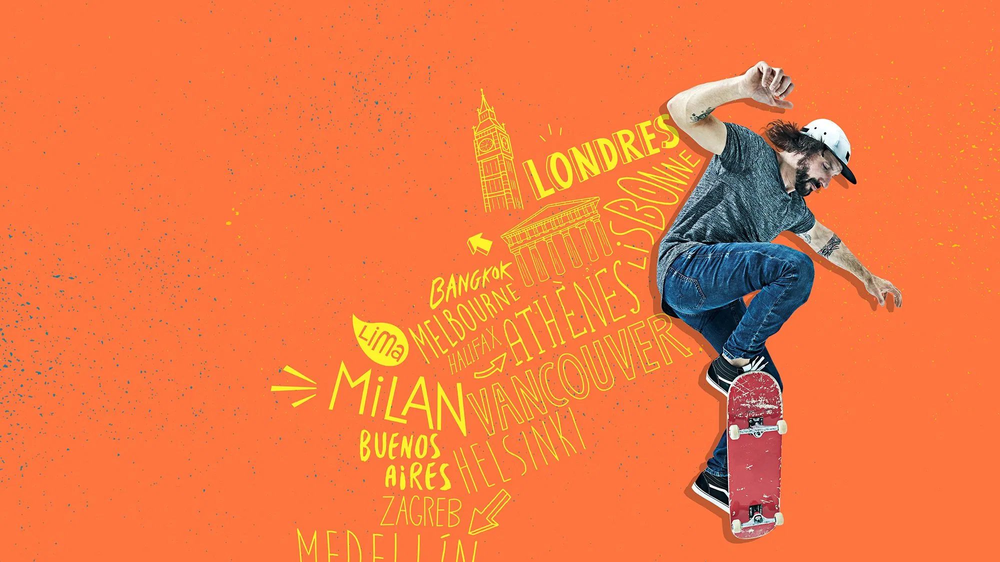 Στη Βαρκελώνη, στην Ιερουσαλήμ, στην Καζαμπλάνκα, στην Αβάνα, στη Βαρσοβία και στο Μόντρεαλ, ταξιδεύει σε σοκάκια και μεγάλες λεωφόρους, εστιάζοντας το ενδιαφέρον σε εναλλακτικά οράματα του skateboard, αλλά και στις Τέχνες, στην Ιστορία και στην Αρχιτεκτονική.