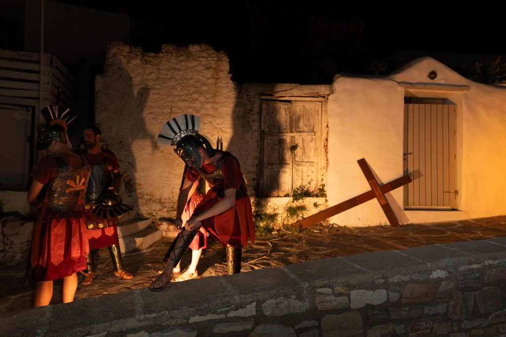 Τη Μεγάλη Παρασκευή, στη Μάρπησσα της Πάρου, όλες οι καθημερινές εργασίες σταματούν, γιατί οι Μαρπησσαίοι κουβαλούν σταυρούς, σιδερώνουν στολές Ρωμαίων στρατιωτών, προσπαθούν να αποφασίσουν αν το γκρενά ταιριάζει περισσότερο στον Χριστό ή στον Ιούδα.