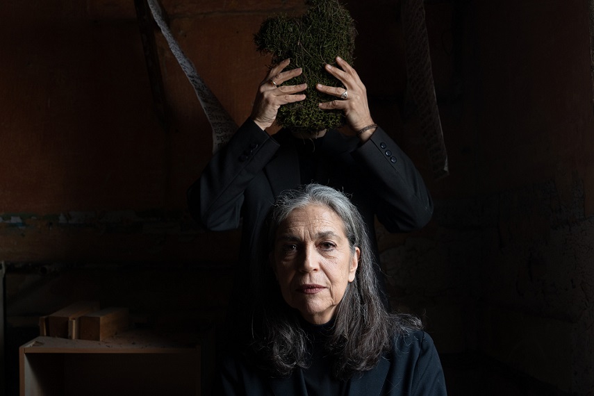 Η σκηνική σύνθεση της Μαρίας Λάππα, σε διάλογο με την αισθητική του χορού Butoh και τη ζωντανή σωματική τέχνη, διαμορφώνει ένα περιβάλλον φυσικών υλικών, όπου σώμα, φωνή και ήχος συνυπάρχουν, ενώ οι ψηφιακές προβολές του Αλέξανδρου Σεϊταρίδη ενισχύουν τη δημιουργία ενός διαρκώς μεταβαλλόμενου εσωτερικού τοπίου.